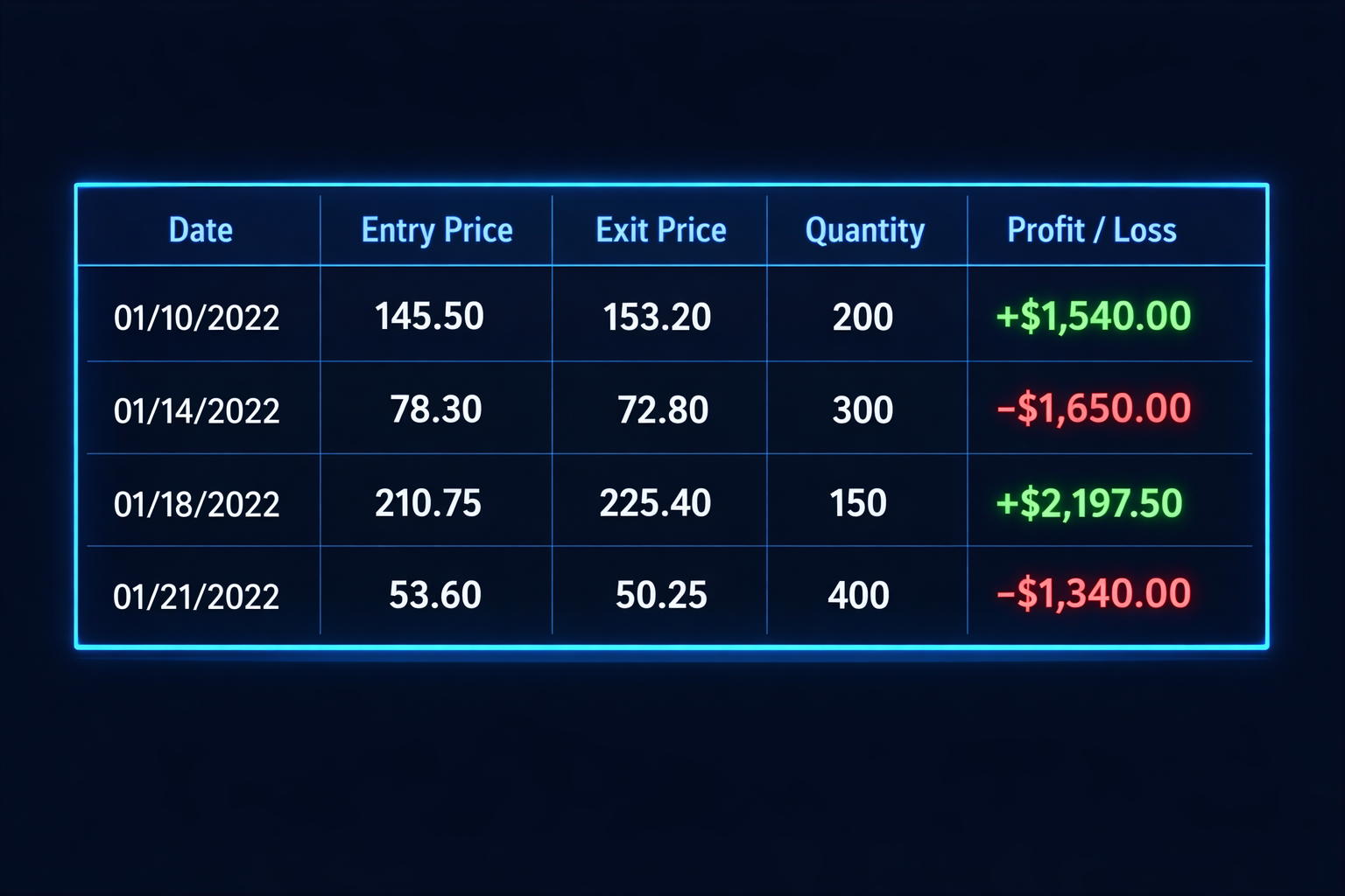 - Stop-Loss Level: Include your stop-loss setting to evaluate risk management decisions.