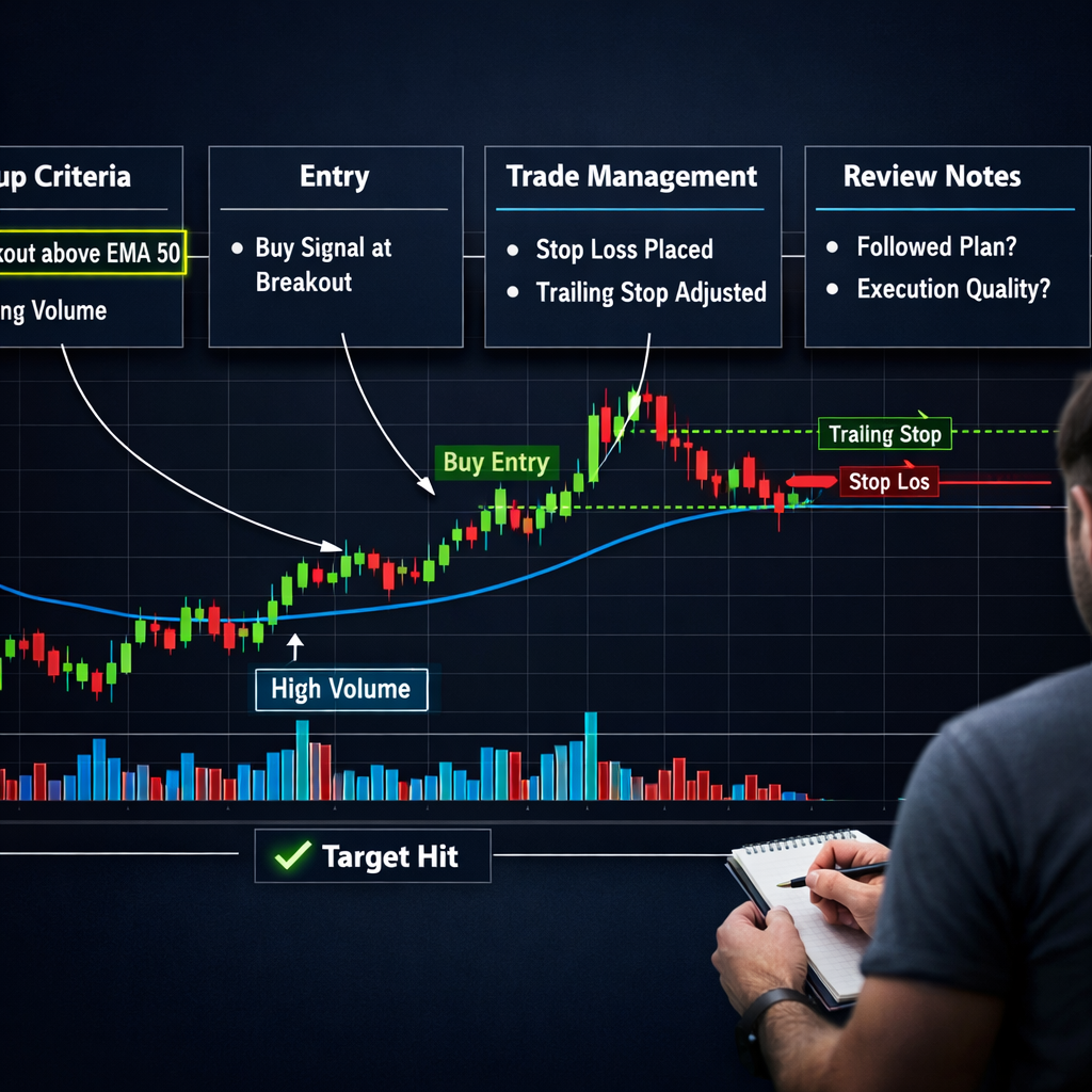 For example, if you use RSI but sometimes deviate due to market volatility, tracking how often you stick to your stop-loss orders can help you identify whether emotional decisions are impacting your process.
