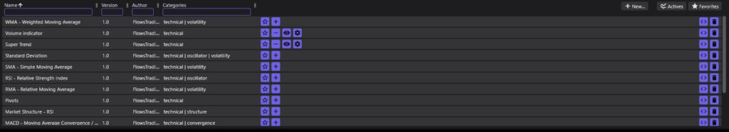 Flows.Trading includes a curated set of the most widely used indicators in both retail and professional environments.